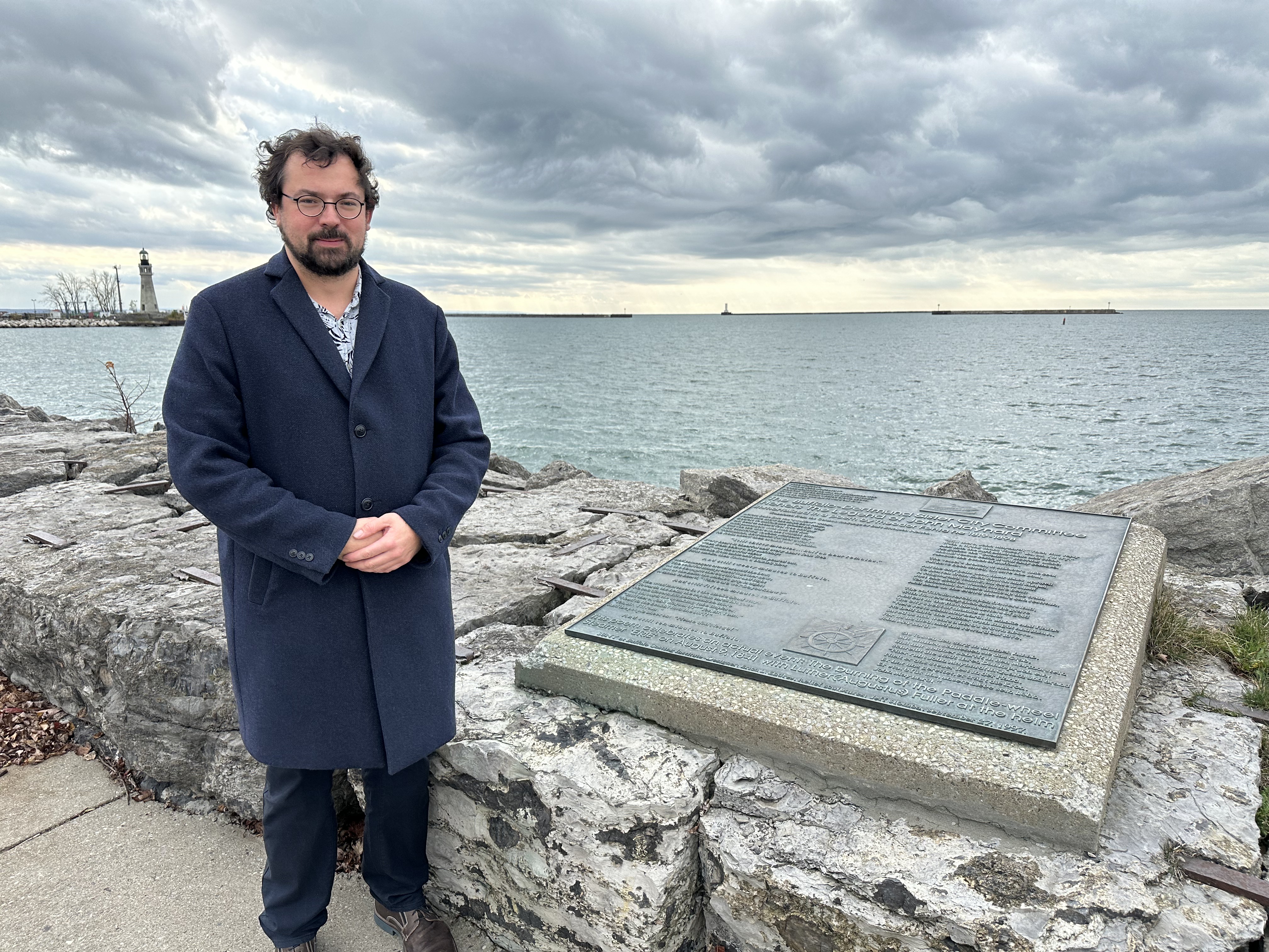 Gedenkstein am Dreiländereck von Ohio, Indiana und Michigan.